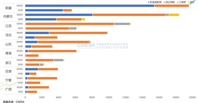 2024年,中國(guó)新型儲(chǔ)能新增投運(yùn)43.7GW/109.8GWh,同比增長(zhǎng)達(dá)103%/136%。從區(qū)域分布來看,新疆和內(nèi)蒙古分別位列能量規(guī)模和功率規(guī)模第一,展現(xiàn)出不同區(qū)域發(fā)展特色,分別以新能源配儲(chǔ)和獨(dú)立儲(chǔ)能為主要發(fā)展方向。
