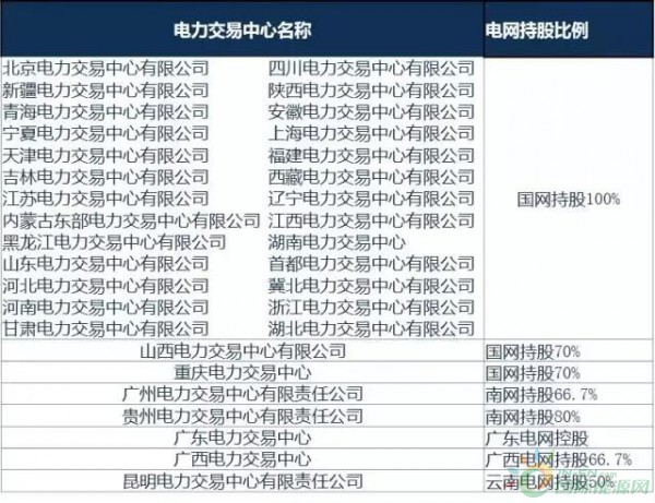 截至9月中旬,全國成立了33個電力交易中心,包括北京、廣州2個國家級電力交易中心和31個省級電力交易中心,只有海南省還沒有成立電力交易中心。其中。省級電力交易中心中,依托于國網(wǎng)的共27家,除山西和重慶電力交易中心有社會資本參股外,其余均由國網(wǎng)全資控股成立;依托于南網(wǎng)的共4家省級電力交易中心,均有社會資本參股。