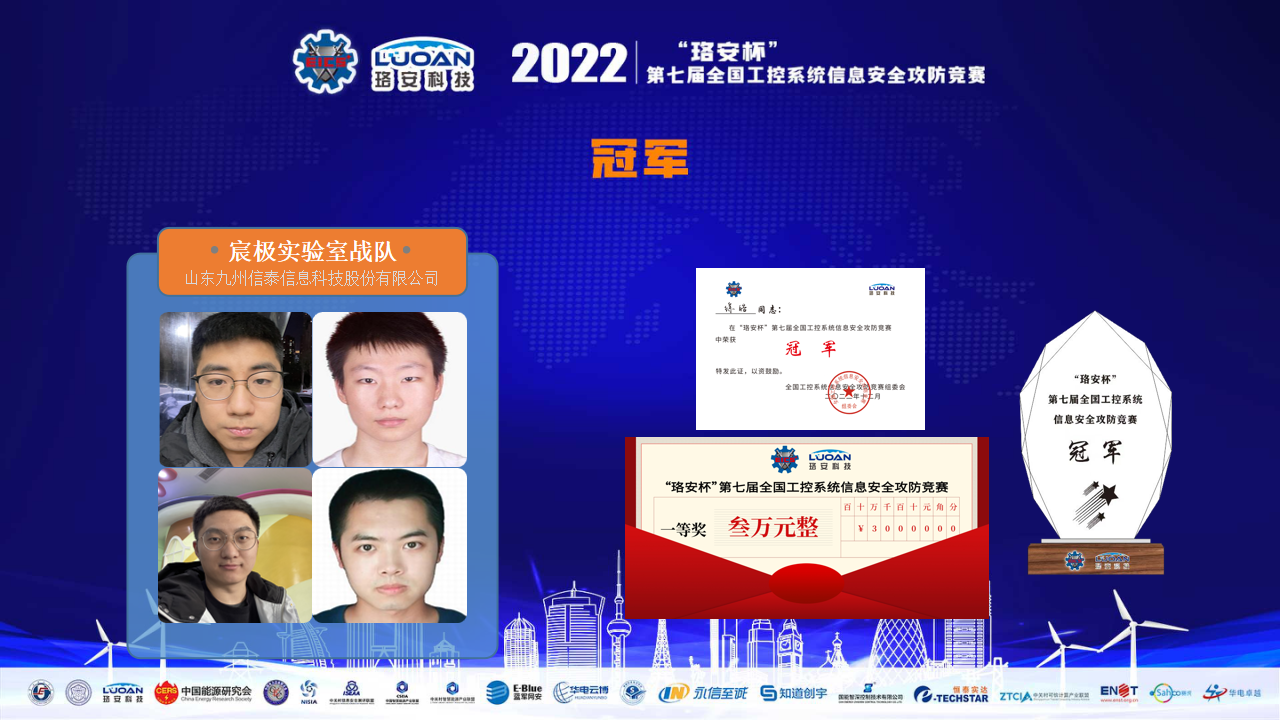 本屆競(jìng)賽仲裁委員會(huì)主任劉韌博士公布了獲獎(jiǎng)隊(duì)伍名單,山東九州信泰信息科技股份有限公司戰(zhàn)隊(duì)獲得冠軍。