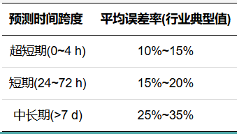 表1 能源行業(yè)風(fēng)電預(yù)測誤差水平表
