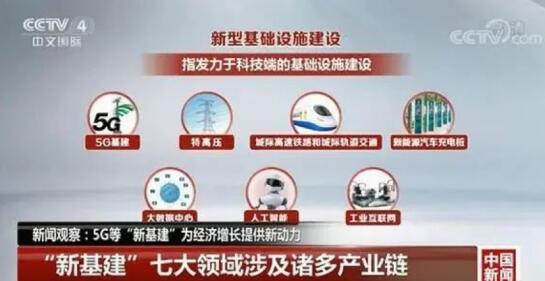 據(jù)央視新聞指出,“新基建”的范圍主要指發(fā)力于科技端的基礎(chǔ)設(shè)施建設(shè),包含5G基建、特高壓、城際高速鐵路和城際軌道交通、新能源汽車充電樁、大數(shù)據(jù)中心、人工智能、工業(yè)互聯(lián)網(wǎng)七大領(lǐng)域,涉及到通信、電力、交通、數(shù)字等多個(gè)社會(huì)民生重點(diǎn)行業(yè)。