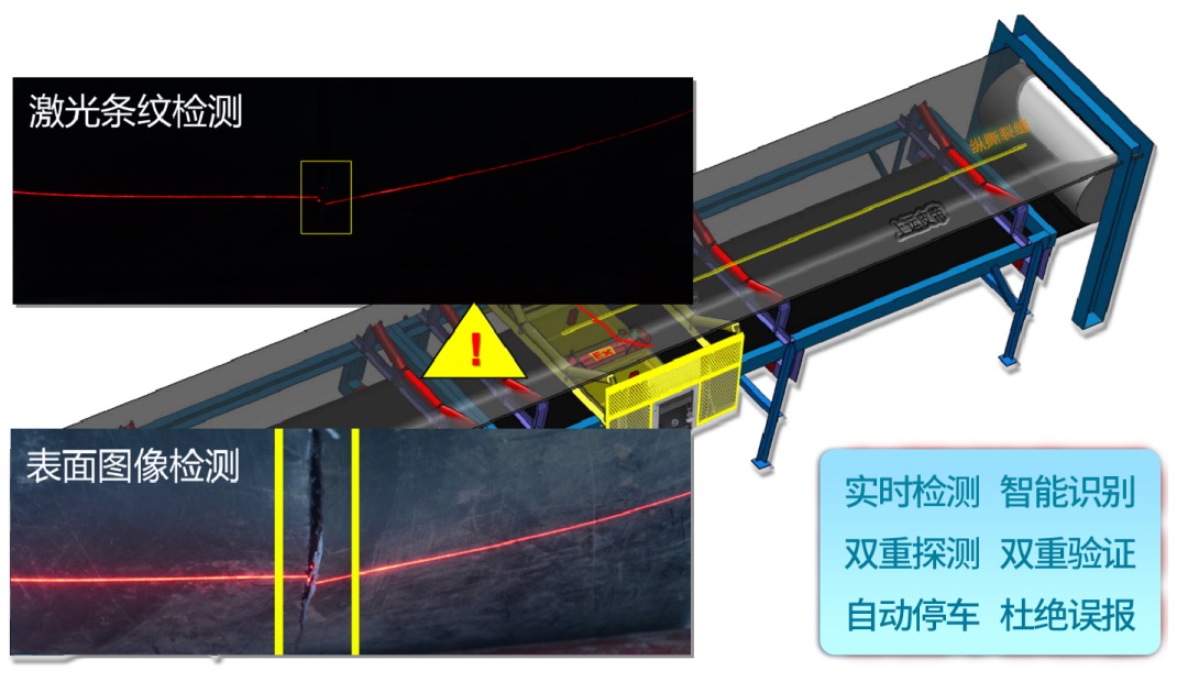 斗輪機(jī)操作人員識別驗(yàn)證采用深度學(xué)習(xí)算法,支持離線比對,人臉比對時間<0.2s/人,人臉比對準(zhǔn)確率≥99%;輸送帶縱向撕裂檢測裝置使用激光束掃描皮帶表面,相機(jī)采集圖像信息,獨(dú)立鑒定,相互驗(yàn)證,當(dāng)兩種手段100%確認(rèn)了縱向撕裂發(fā)生,系統(tǒng)才進(jìn)行報警。