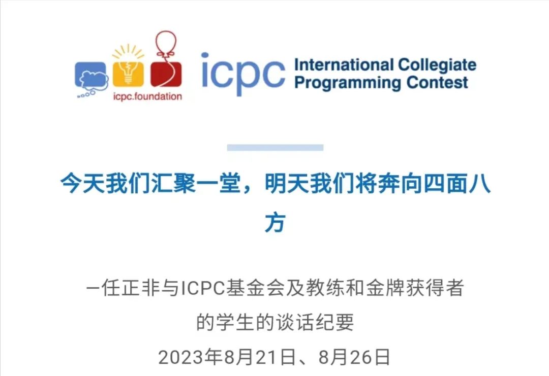 9月19日,國際大學生程序設計競賽(International Collegiate Programming Contest,簡稱ICPC)官網披露了華為創(chuàng)始人兼CEO任正非8月21日、8月26日與ICPC基金會及教練和金牌獲得者的學生的談話紀要。