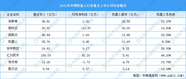 工業(yè)機器人行業(yè)重點上市公司經營情況對比分析