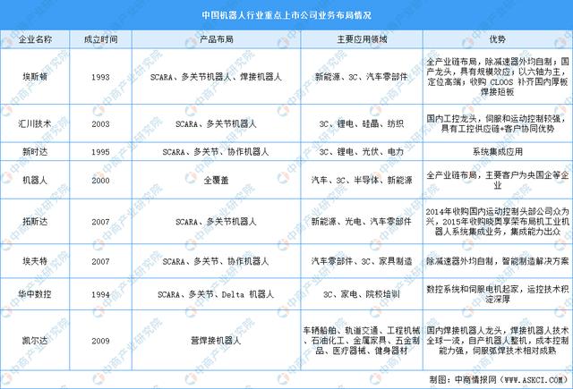 工業(yè)機器人行業(yè)重點上市公司業(yè)務布局