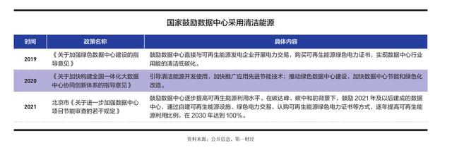 2019年以來,國家先后出臺多個政策推動數據中心采用清潔能源。傳統(tǒng)風電、光伏發(fā)電理論裝機功率可以滿足數據中心用電需求,但數據中心的高性能設備對電源穩(wěn)定性要求加較高,與風電、光伏發(fā)電的波動性、間歇性存在結構性矛盾 。