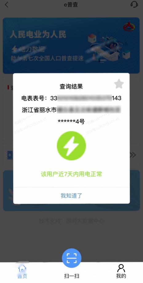 查詢(xún)操作也十分簡(jiǎn)單:只需打開(kāi)網(wǎng)上國(guó)網(wǎng)app,點(diǎn)擊“e普查”模塊,掃描住戶(hù)用電電能表上的條形碼(即表號(hào)),隨后將自動(dòng)生成綠、黃、紅三種查詢(xún)結(jié)果,快速呈現(xiàn)出該住戶(hù)的用電情況。