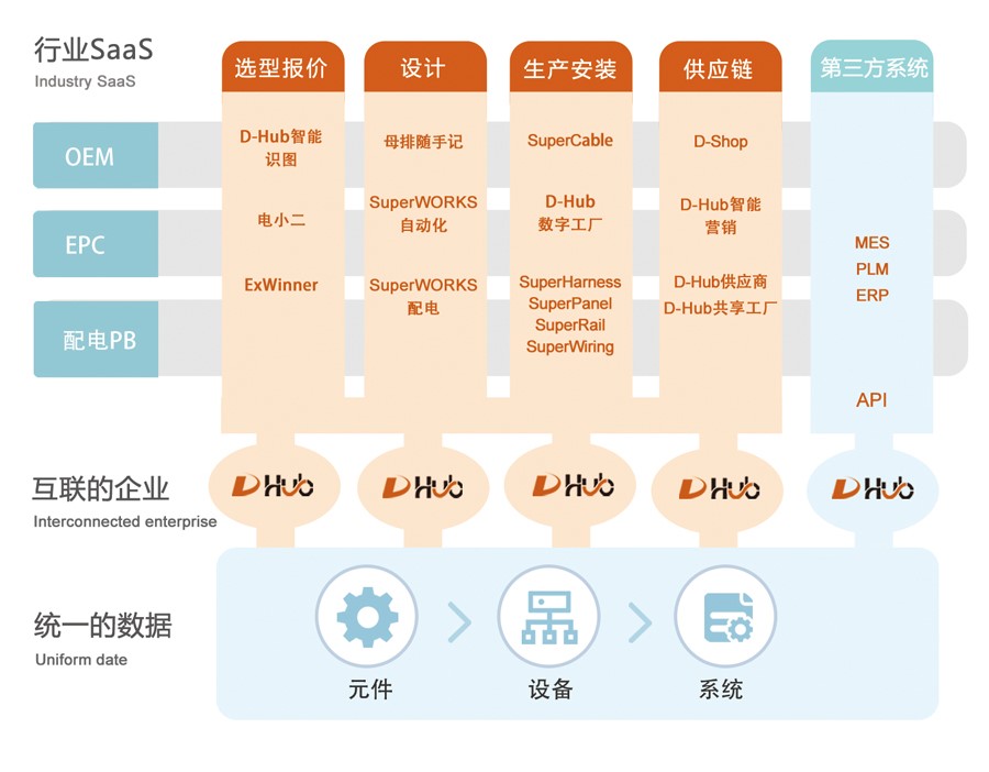 令永卓深諳數(shù)據(jù)的價(jià)值。他帶著創(chuàng)業(yè)家的韌勁,敏銳洞察電力裝備制造行業(yè)的發(fā)展趨勢(shì),本著從數(shù)據(jù)中學(xué)習(xí)、改變電力電氣行業(yè)的初衷,從數(shù)據(jù)中提取價(jià)值服務(wù)用戶的理念,提出用數(shù)據(jù)賦能行業(yè),致力于打通數(shù)據(jù)流。談起如今專注挖掘數(shù)據(jù)的價(jià)值,令永卓表示,這一切源于他求學(xué)時(shí)代的經(jīng)歷。大學(xué)期間,在清華工程力學(xué)系求學(xué)的令永卓建立了面向問題建立數(shù)學(xué)模型,把復(fù)雜的非線性問題抽象為簡(jiǎn)單的線性問題進(jìn)行求解的思維方式。在后來的工作中,他發(fā)現(xiàn)設(shè)備的設(shè)計(jì)、生產(chǎn)制造以及運(yùn)維之間并非真正有效連接,存在嚴(yán)重的數(shù)據(jù)偏差甚至脫節(jié)的現(xiàn)象,為達(dá)到設(shè)計(jì)、制造以及供應(yīng)鏈的協(xié)同,他提出在電力裝備制造行業(yè)形成貫穿橫向、縱向、端到端的數(shù)據(jù)流通的舉措。之后,他將創(chuàng)想落地,從電氣軟件的數(shù)據(jù)建模開始,制定標(biāo)準(zhǔn),進(jìn)行3D仿真,通過機(jī)器智能設(shè)計(jì)、智能識(shí)圖、智能報(bào)價(jià),進(jìn)而幫助產(chǎn)品實(shí)現(xiàn)協(xié)同制造。令永卓透露:“當(dāng)前基于D-Hub制造的縱向數(shù)據(jù)流與D-Hub供應(yīng)鏈的橫向數(shù)據(jù)流已經(jīng)被成功打通,下一步我們將重點(diǎn)打通集產(chǎn)品研發(fā)、系統(tǒng)設(shè)計(jì)、安裝施工、運(yùn)營維護(hù)的D-Hub運(yùn)維的端到端數(shù)據(jù)流。”