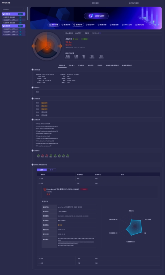 長揚(yáng)態(tài)感網(wǎng)絡(luò)空間安全分析功能以資產(chǎn)為核心,從區(qū)域、聯(lián)通性、病毒、情報(bào)、漏洞、基線、溯源、UEBA行為等多個(gè)方面進(jìn)行全方位、立體化分析。