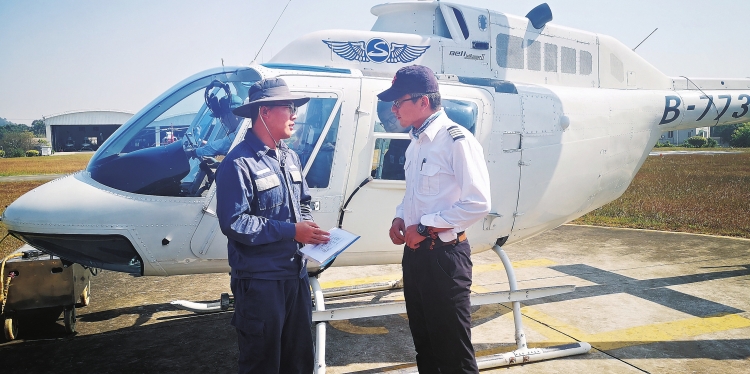 廣東電網(wǎng)公司佛山供電局輸電所智能運(yùn)維人員利用直升機(jī)吊艙開展架空線路激光建模。 麥俊佳 攝