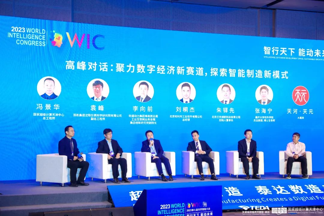 高峰對話環(huán)節(jié)由國家超級計算天津中心總工程師馮景華主持,圍繞“聚力數(shù)字經濟新賽道,探索智能制造新模式”主題展開探討。國機集團沈陽儀表科學研究院有限公司副總工程師袁峰;軟通動力集團高級副總裁,工業(yè)互聯(lián)網(wǎng)業(yè)務總裁,集團創(chuàng)新研究院副院長、李向前;北京和利時工業(yè)軟件有限公司總經理、劉桐杰;北京蘭光創(chuàng)新科技有限公司創(chuàng)始人、董事長,朱鐸先;南開大學軟件學院、杰出教授、博士生導師、張海寧;以及神秘的 AI 嘉賓-天河·天元,現(xiàn)場共話智能制造新模式,推動數(shù)字經濟發(fā)展。