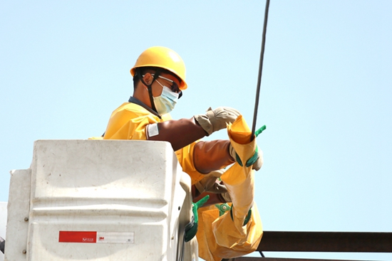 中國(guó)電力網(wǎng)訊 5月7日,在濰坊壽光市文正教育學(xué)校附近,國(guó)網(wǎng)壽光市供電公司帶電作業(yè)人員對(duì)10千伏全福元1線東郭支線02號(hào)桿,10千伏華府線東七南支線04號(hào)桿進(jìn)行帶電絕緣化改造,進(jìn)一步提高線路安全運(yùn)行水平,確保廣大師生能夠用上安全電、放心電。