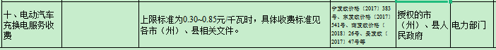 各地按照定價權(quán)限制定電動汽車充換電服務(wù)費標準0.50~0.70元/千瓦時(不含電費)。