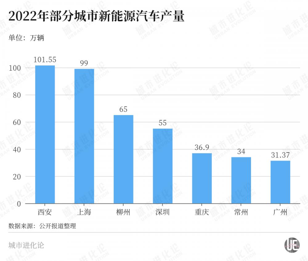 這多少有些令人意外。在上海有特斯拉超級工廠,柳州有上汽通用五菱,合肥、廣州坐擁風頭正盛的造車新勢力蔚來和小鵬汽車……在新能源汽車產量第一城的角逐中,西安并沒有多少優(yōu)勢。