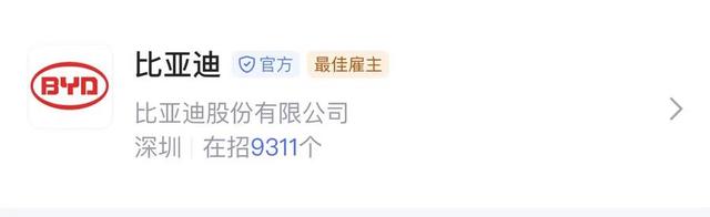 招聘軟件中關(guān)于比亞迪的招聘崗位總數(shù)為9311個