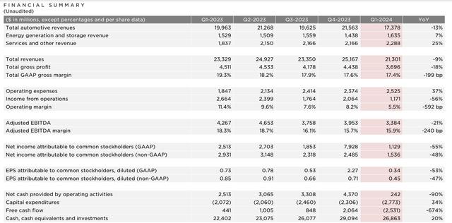 財(cái)報(bào)顯示,特斯拉一季度營(yíng)收同比下降9%至213億美元,低于市場(chǎng)預(yù)期的223億美元,既是2020年二季度新冠疫情擾亂運(yùn)營(yíng)以來(lái)的近四年里首次同比下滑,也是2012年以來(lái)最大降幅,較去年四季度的251.7億美元環(huán)比下滑超15%,主要由于全球?qū)﹄妱?dòng)汽車的需求放緩。