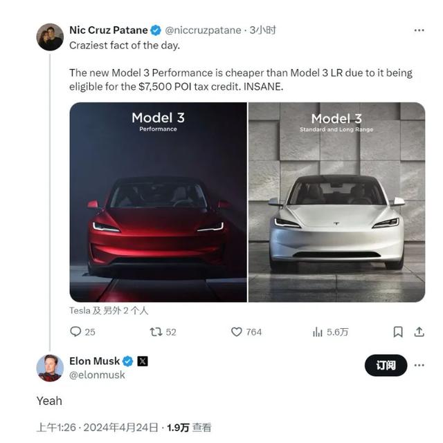 雖然美國(guó)網(wǎng)友一開(kāi)始的關(guān)注焦點(diǎn)還是這輛車的續(xù)航里程,但很快就被價(jià)格引發(fā)的熱議蓋過(guò)了——美國(guó)網(wǎng)友驚奇的發(fā)現(xiàn),由于美國(guó)現(xiàn)行的電動(dòng)車補(bǔ)貼政策,新的高性能版竟然要比標(biāo)準(zhǔn)長(zhǎng)續(xù)航版還要便宜!