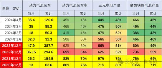 5月18日,乘聯(lián)會秘書長崔東樹撰文指出,目前動力電池的產(chǎn)量中裝車的比例在不斷降低。2020年動力電池裝車率達到76%,2021年是70%,2022年是54%,2023年是50%,2024年1-4月已經(jīng)降到了46%。