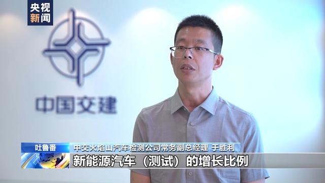 中交火焰山汽車檢測公司常務(wù)副總經(jīng)理 于勝利:吐魯番6到9月份,氣溫就可以達(dá)到40℃以上。我們同比進(jìn)行分析,新能源汽車測試的增長比例已經(jīng)達(dá)到了25%左右,測試的四輛車?yán)锎蟾庞幸惠v車就是新能源車。