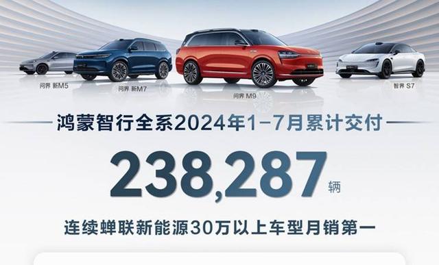 鴻蒙智行在7月交付了44,090輛新車(chē),相比6月有小幅下滑。其中,問(wèn)界M9勢(shì)頭依舊強(qiáng)勁,7月共交付了18,047輛,問(wèn)界M7交付了16,562輛,問(wèn)界M5交付了6,926輛,智界S7則交付了2,555輛。今年1-7月,鴻蒙智行累計(jì)交付量為238,287輛。