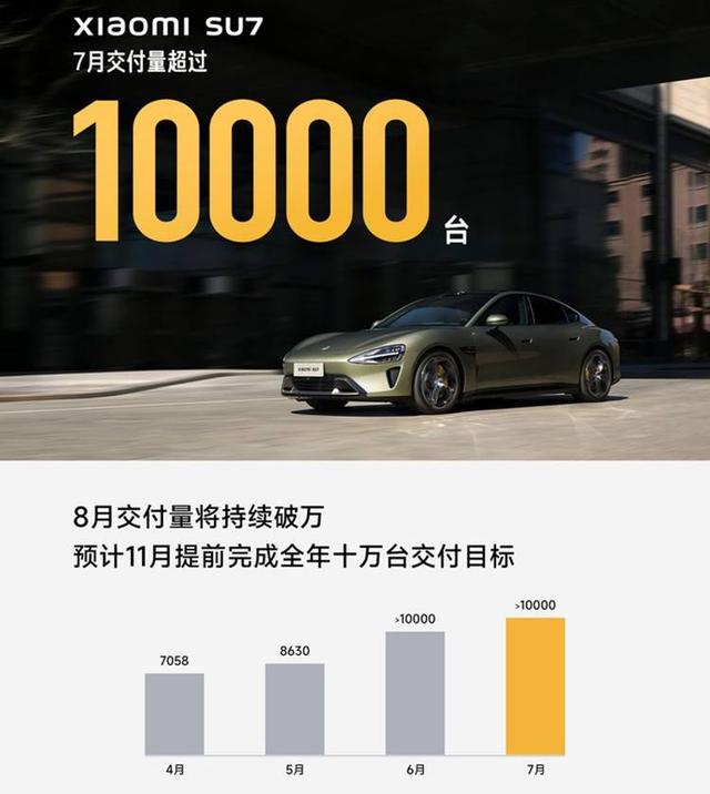 小米7月的交付量超10,000輛,今年累計(jì)交付量已經(jīng)超30,000輛。官方預(yù)測(cè),其8月的交付量將持續(xù)破萬(wàn),預(yù)計(jì)在11月提前完成全年十萬(wàn)輛的交付目標(biāo)。