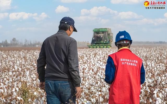 國網(wǎng)烏魯木齊供電公司黨員服務(wù)隊做好用電檢查助力棉農(nóng)豐收。通訊員王晉魁攝
