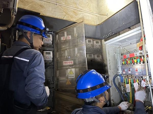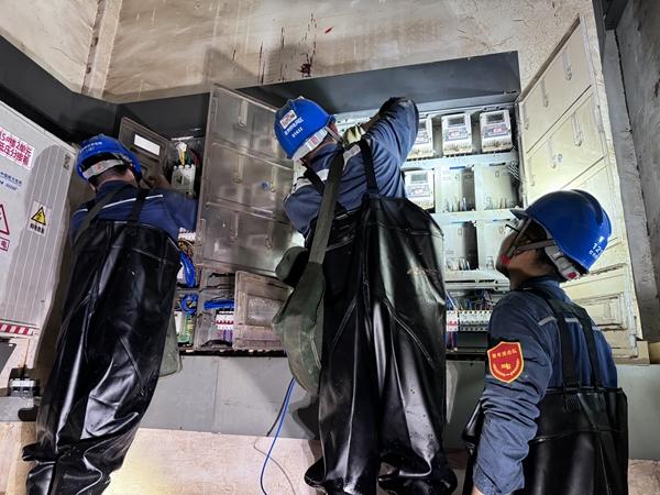 6月22日下午,南方電網(wǎng)廣西欽州浦北供電局黨員突擊隊(duì)在桂林市興進(jìn)漓江壹號(hào)小區(qū)地下室更換配電開(kāi)關(guān)。羅陽(yáng)攝