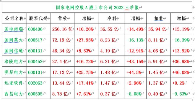 國家電網(wǎng)旗下6家上市公司2022三季報(bào)