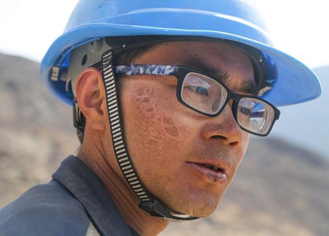 他所在的這支施工隊(duì)已經(jīng)有兩名工人因?yàn)檫m應(yīng)不了高反而離開(kāi)。“眼鏡”很頑強(qiáng),盡管一樣有輕微高反,但他都堅(jiān)持下來(lái)了。紫外線輻射、雪風(fēng)沖刷,臉上滿是溝壑,但意志堅(jiān)如磐石。正是像“眼鏡”一樣最可愛(ài)、最光榮、最普通的電網(wǎng)建設(shè)者,撐起了四川甘孜巴塘高原藏區(qū)百姓的光明夢(mèng)、致富夢(mèng)、幸福夢(mèng)。