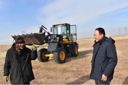 為完成老鄉(xiāng)新房通電的訴求,李平多次開展現場踏勘,積極奔走協(xié)調旗政府相關部門,聯(lián)合內蒙古電力鄂托克前旗供電局等有關單位溝通研討送電事宜。11月28日,通往朝日格圖家的10千伏輸電線路正式開工,李平冒著零下15度的嚴寒前往現場監(jiān)督施工進度,在冬日鄂爾多斯高原的夕陽下,一條承載著牧民用電希望的銀色緞帶在哈沙圖牧場迅速升起。