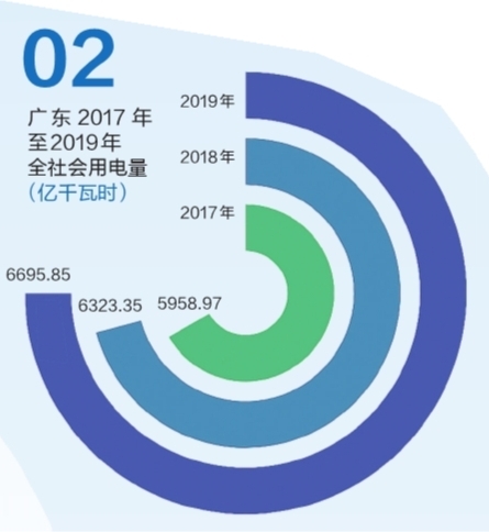 2019年,廣東省全社會(huì)用電量6695.85億千瓦時(shí),同比增長(zhǎng)5.89%,用電增長(zhǎng)總體保持平穩(wěn)。