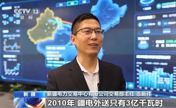 新疆電力交易中心有限公司交易部主任 張新偉:2010年,疆電外送只有3億千瓦時,現(xiàn)在已經(jīng)突破7400億千瓦時,覆蓋范圍也從最初的7個省區(qū)市擴展到20個省區(qū)市,實現(xiàn)了“能源空中走,電送全中國”的目標。