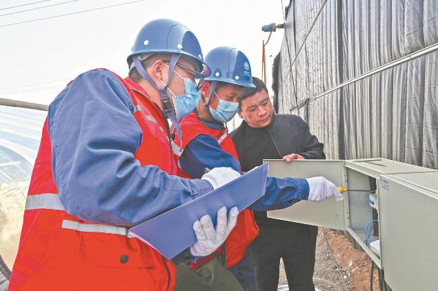 國家電網(wǎng)河北電力(深澤)共產(chǎn)黨員服務(wù)隊隊員來到深澤縣森海糧食種植專業(yè)合作社,幫助企業(yè)檢查用電設(shè)施。張建峰 攝