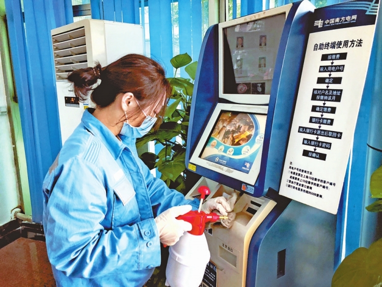連日來(lái),廣東電網(wǎng)公司江門臺(tái)山供電局組織員工對(duì)營(yíng)業(yè)廳、辦公場(chǎng)所和車輛進(jìn)行全面清潔消毒,做好防疫后勤保障工作。謝錕 攝