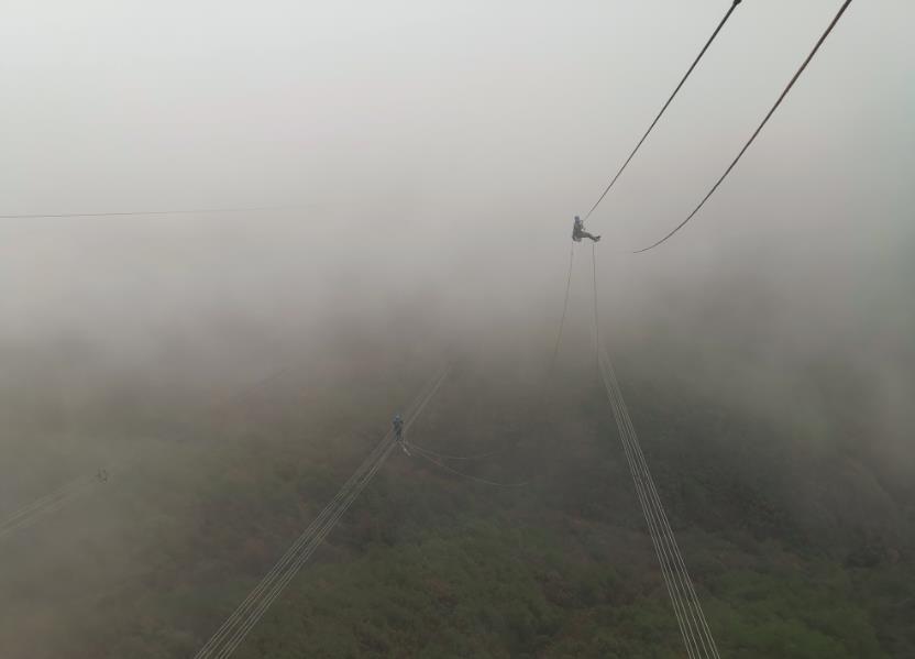 寒潮前夕,南方電網(wǎng)超高壓公司柳州局輸電所檢修人員頂著寒風(fēng)在架空地線上懸空開展500千伏桂山乙線55#大號(hào)側(cè)架空地線復(fù)合光纜補(bǔ)強(qiáng)工作,確保在即將到來的雨雪冰凍天氣中覆冰監(jiān)測(cè)裝置及整條線路保持安全運(yùn)行。