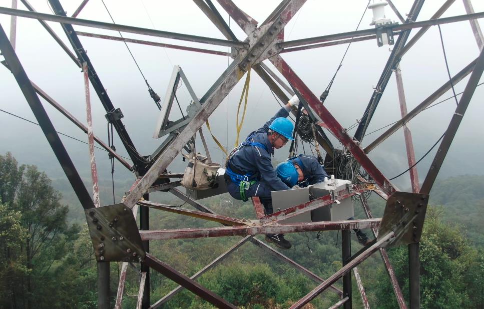 11月29日,南方電網(wǎng)廣西桂林供電局輸電管理所工作人員對(duì)220千伏如沙線116號(hào)塔進(jìn)行覆冰預(yù)警裝置維護(hù)工作。