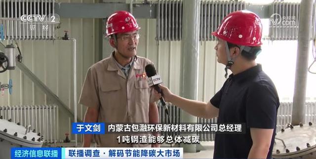 內(nèi)蒙古包瀜環(huán)保新材料有限公司總經(jīng)理 于文劍:主反應器每小時能處理12.5噸的鋼渣量,通過它的化學反應,一噸鋼渣能夠總體減碳1.25噸。