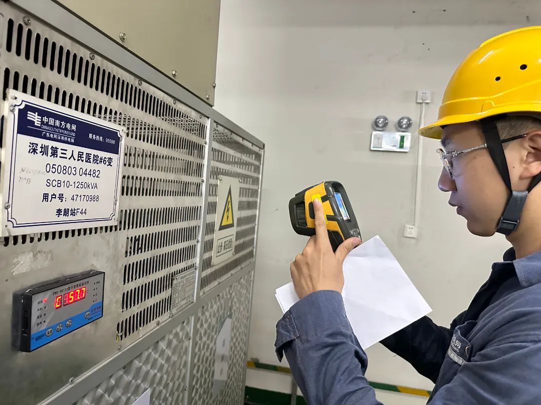 ▲8月31日,南方電網(wǎng)深圳龍崗供電局供電人員對醫(yī)院等涉及民生保障的重要場所開展設備巡視,全力確保供電穩(wěn)定可靠。(林澤彬 鐘謹蔚)