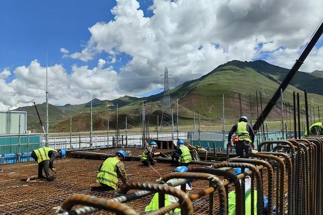 國(guó)網(wǎng)河南送變電建設(shè)有限公司施工人員在青藏聯(lián)網(wǎng)二期工程±400千伏拉薩換流站開(kāi)展鋼筋綁扎作業(yè)。