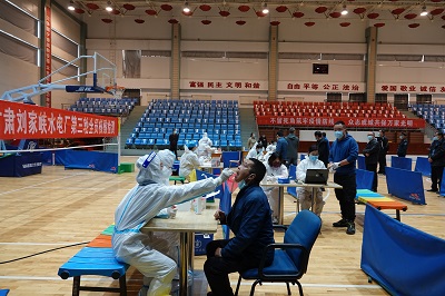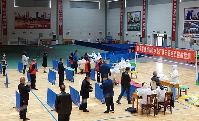 早上8時(shí)起,該廠體育館里工作人員、醫(yī)護(hù)人員和志愿者紛紛忙碌起來(lái),布置采樣桌,擺放電腦,連接網(wǎng)線,檢測(cè)區(qū)域設(shè)置一米間隔。體育館外,等待檢測(cè)的人員攜帶工作證、身份證排隊(duì),由該廠黨員干部、志愿者組成的引導(dǎo)人員在現(xiàn)場(chǎng)維持秩序,提醒待檢測(cè)人員注意間隔、避免扎堆。9時(shí)起,檢測(cè)工作正式開(kāi)始,志愿者引導(dǎo)待檢人員分組進(jìn)入檢測(cè)現(xiàn)場(chǎng)、有序進(jìn)行登記,醫(yī)護(hù)人員“全副武裝”,身著防護(hù)服、護(hù)面罩,為大家采集咽拭子。檢測(cè)現(xiàn)場(chǎng)設(shè)置十分合理,大家都站在一米間隔線上,隊(duì)伍有序順暢,檢測(cè)速度大幅提升。