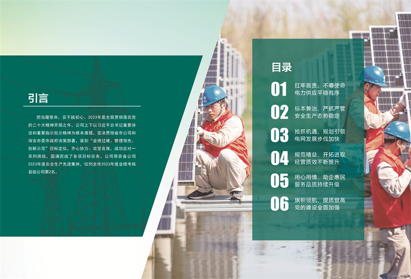 《白皮書》指出,2023年,國網(wǎng)海安市供電公司緊扣“業(yè)績過硬、管理領(lǐng)先、創(chuàng)新示范”的目標(biāo)定位,齊心協(xié)力、攻堅(jiān)克難,成功應(yīng)對一系列挑戰(zhàn)?!栋灼分羞€作出了2024年履責(zé)承諾。