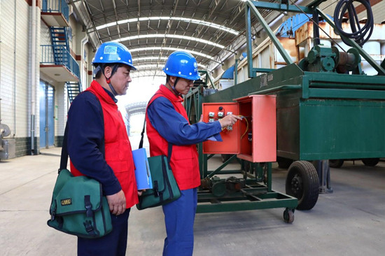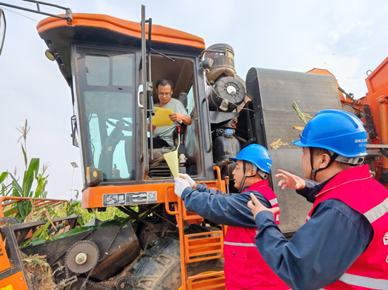國(guó)網(wǎng)石家莊市鹿泉區(qū)供電公司員工到糧食倉(cāng)儲(chǔ)企業(yè)檢查用電設(shè)備。張靜攝秋收到來前,國(guó)網(wǎng)元氏縣供電公司服務(wù)人員到齊范村農(nóng)民種植合作社,為7臺(tái)秋糧傳送帶、2臺(tái)烘干塔及精選篩機(jī)、振動(dòng)篩機(jī)用電設(shè)備“義診”檢查,消除安全隱患2處,保障玉米烘干、倉(cāng)儲(chǔ)用電。國(guó)網(wǎng)石家莊供電公司主動(dòng)對(duì)接農(nóng)業(yè)合作社及儲(chǔ)糧企業(yè),全面檢查配電箱等供電設(shè)施,簡(jiǎn)化用電報(bào)裝流程,提高辦電工作效率,為秋糧烘干及倉(cāng)儲(chǔ)提供可靠電力保障。