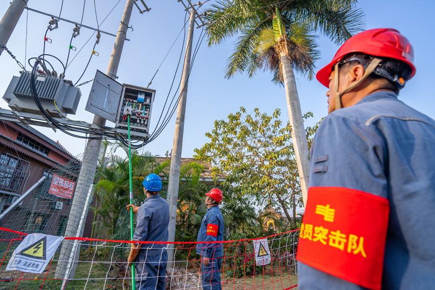 西雙版納供電局保供電黨員突擊隊在春節(jié)期間開展電力維護(hù)。任軍攝