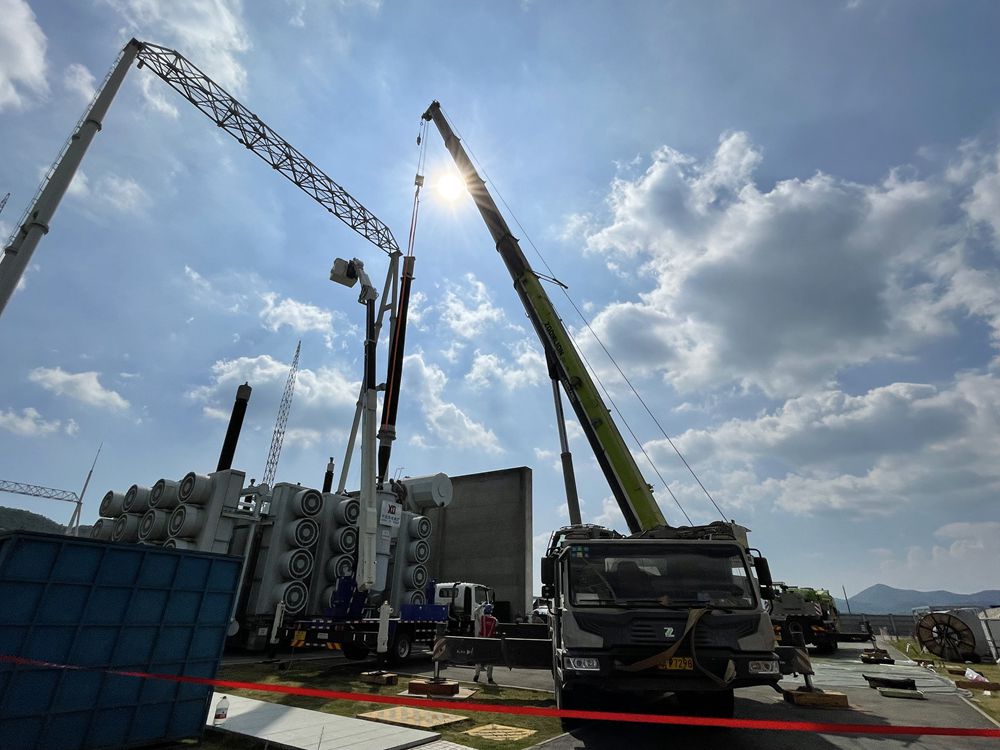 本網(wǎng)訊 “連接面上的所有緊固件已拆除,可以起吊。”“地面作業(yè)人員請注意,高空已準備就位,開始起吊。”9月4日上午,一聲聲指令和機器的轟鳴聲,以及工作人員的相互提醒聲在1000千伏特高壓榕城變電站匯成一片。36名來自國網(wǎng)福建檢修公司的檢修人員正緊張開展我省首次特高壓1000千伏主變壓器GOE套管拉桿大修工作。