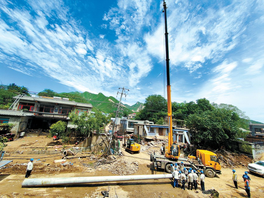 國網(wǎng)北京市電力公司迅速啟動汛情預警應急響應,加緊對受災地區(qū)進行搶修復電工作。針對災情嚴重的房山、門頭溝區(qū)域,從各區(qū)調(diào)配支援人員、裝備、物資,已投入近4620人的搶修力量,配備109輛發(fā)電車,430余臺小型發(fā)電機、1100余輛搶修車輛,按照“水退、路通、人進、電通”原則,緊急開展搶修及復電工作。