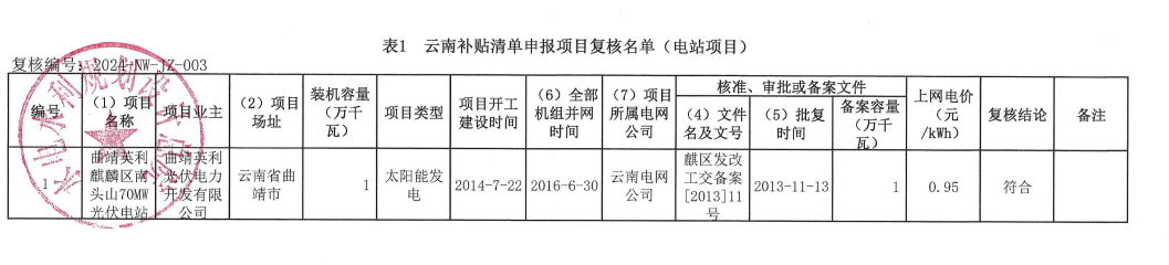 根據(jù)《財(cái)政部辦公廳關(guān)于開(kāi)展可再生能源發(fā)電補(bǔ)貼項(xiàng)目清單審核有關(guān)工作的通知》(財(cái)辦建〔2020〕6號(hào))和《國(guó)家可再生能源信息管理中心關(guān)于可再生能源發(fā)電補(bǔ)貼項(xiàng)目清單申報(bào)與審核工作有關(guān)要求的公告》等文件要求,相關(guān)可再生能源發(fā)電企業(yè)對(duì)滿足條件的可再生能源發(fā)電項(xiàng)目進(jìn)行補(bǔ)貼清單申報(bào),經(jīng)云南電網(wǎng)初審、云南省能源局審核確認(rèn)、國(guó)家可再生能源信息管理中心復(fù)核。現(xiàn)將國(guó)家可再生能源信息管理中心復(fù)核通過(guò)的云南補(bǔ)貼清單申報(bào)項(xiàng)目復(fù)核名單(電站項(xiàng)目)予以公示。