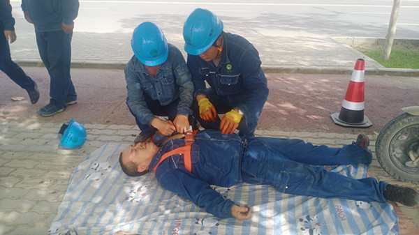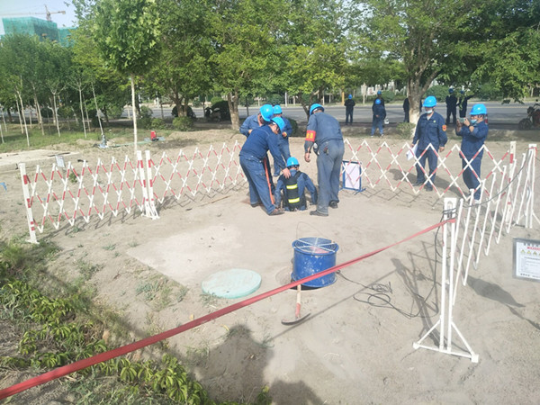 中國電力網(wǎng)訊 為了加強對有限空間作業(yè)的安全管理,更好地應(yīng)對中毒、窒息、淹溺等突發(fā)受限空間安全事故發(fā)生,切實保護作業(yè)人員生命安全,6月10日,新疆兵團一師電力阿拉爾熱力分公司開展了一場有限空間應(yīng)急演練活動。