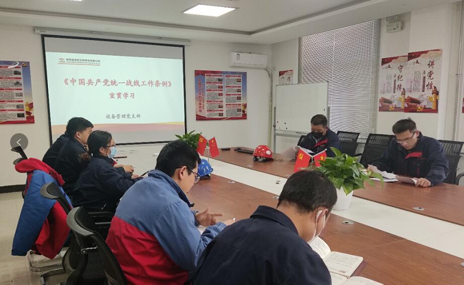 中國電力網(wǎng)訊 近日,陜投集團趙石畔煤電公司各黨支部組織黨員干部深入學習《中國共產(chǎn)黨統(tǒng)一戰(zhàn)線工作條例》。通過原文系統(tǒng)學習,深入了解統(tǒng)戰(zhàn)工作對全面建成小康社會、加快推進社會主義現(xiàn)代化和實現(xiàn)中華民族偉大復興中國夢的重要意義。