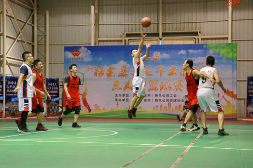中國(guó)電力網(wǎng)訊 為豐富員工業(yè)余生活,提高員工身體素質(zhì),增進(jìn)各外委單位及各部門間溝通與交流,國(guó)能(泉州)熱電有限公司開(kāi)展第二屆“社會(huì)主義是干出來(lái)的”三人制籃球賽,此次比賽吸引來(lái)自機(jī)關(guān)、設(shè)備生技、運(yùn)行、外委單位共12隊(duì)70人參加,11月15日,隨著一聲哨響,在該公司文體館正式吹起比賽號(hào)角。