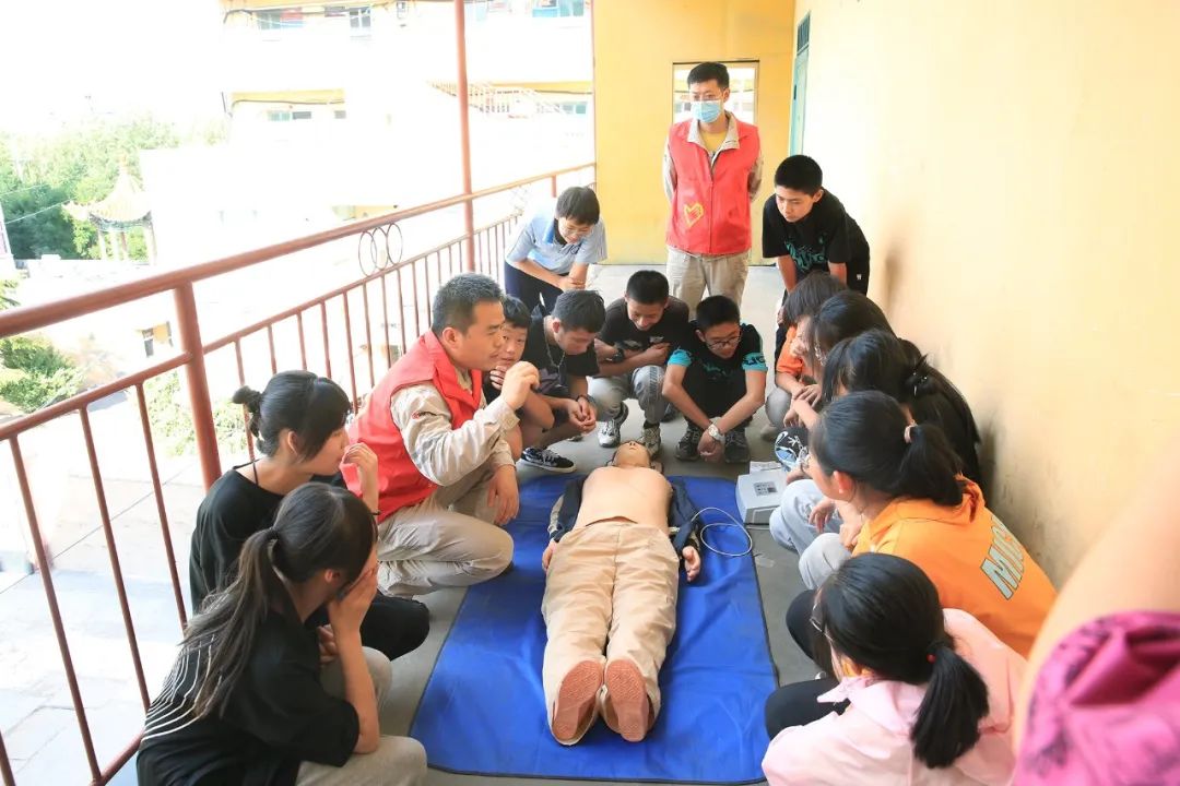 活動現(xiàn)場,青年志愿者給孩子們發(fā)放了安全環(huán)保宣傳手冊及宣傳單,給孩子們認(rèn)真講解交通安全、消防滅火和生活中的安全防護(hù)知識,緊緊圍繞“遵守安全生產(chǎn)法 當(dāng)好第一責(zé)任人”主題,為孩子們進(jìn)行“面對面、零距離、互動式”宣講、普及、解答有關(guān)應(yīng)急救援知識。借助橡皮人給孩子們培訓(xùn)心肺復(fù)蘇急救知識,詳細(xì)講解操作流程和注意事項(xiàng),并指導(dǎo)孩子們親自上手操作實(shí)踐,提升孩子們的應(yīng)急防護(hù)能力。
